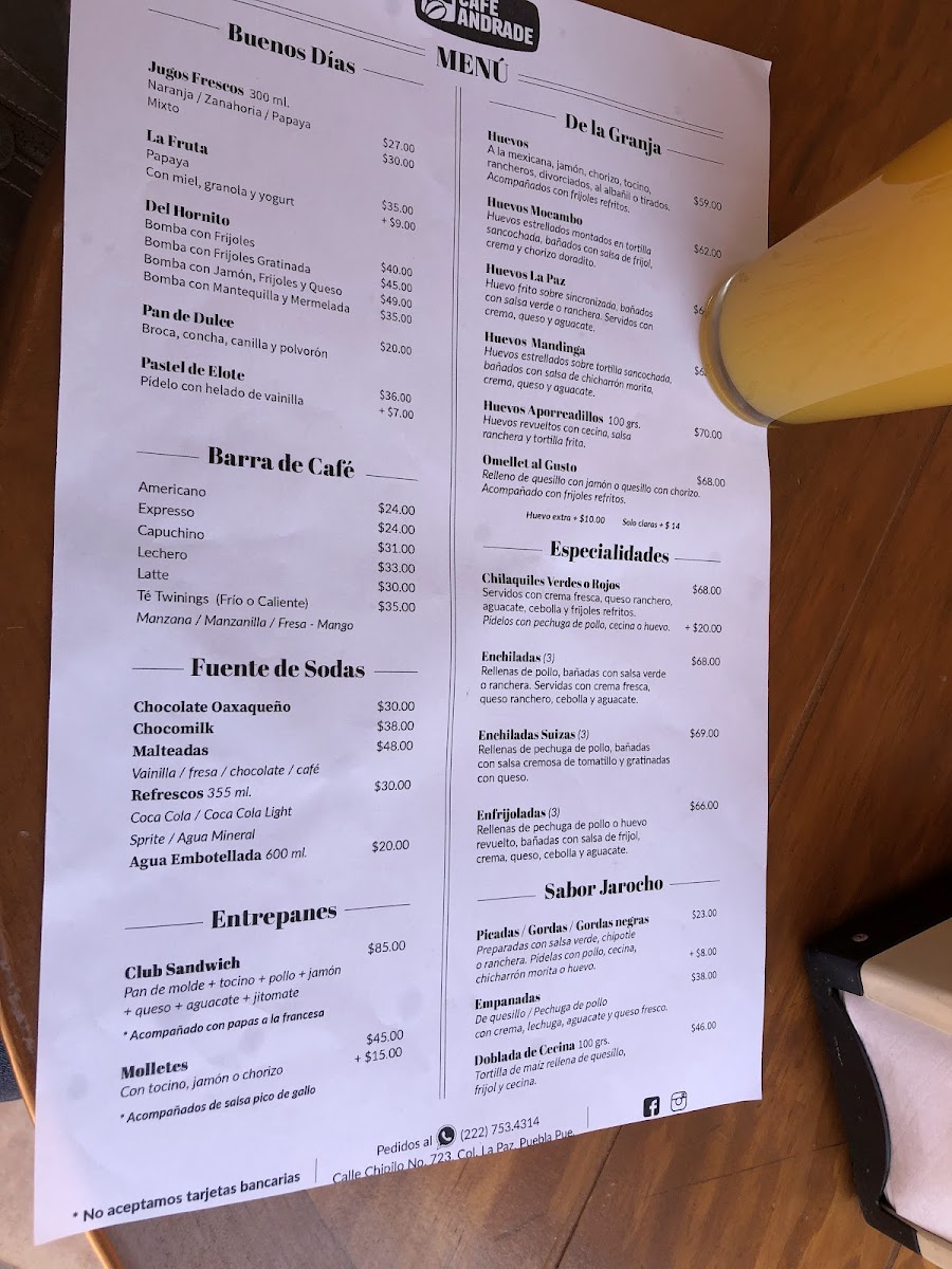 Welcome to Café Andrade Puebla, a delightful café nestled in the heart of Heroica Puebla de Zaragoza, Mexico. This charming spot stands out for its authentic culinary offerings and inviting atmosphere. Customers frequently rave about the huevos aporreadillos con cecina and chilaquiles verdes, both brimming with vibrant flavors that capture the essence of traditional Mexican breakfast.